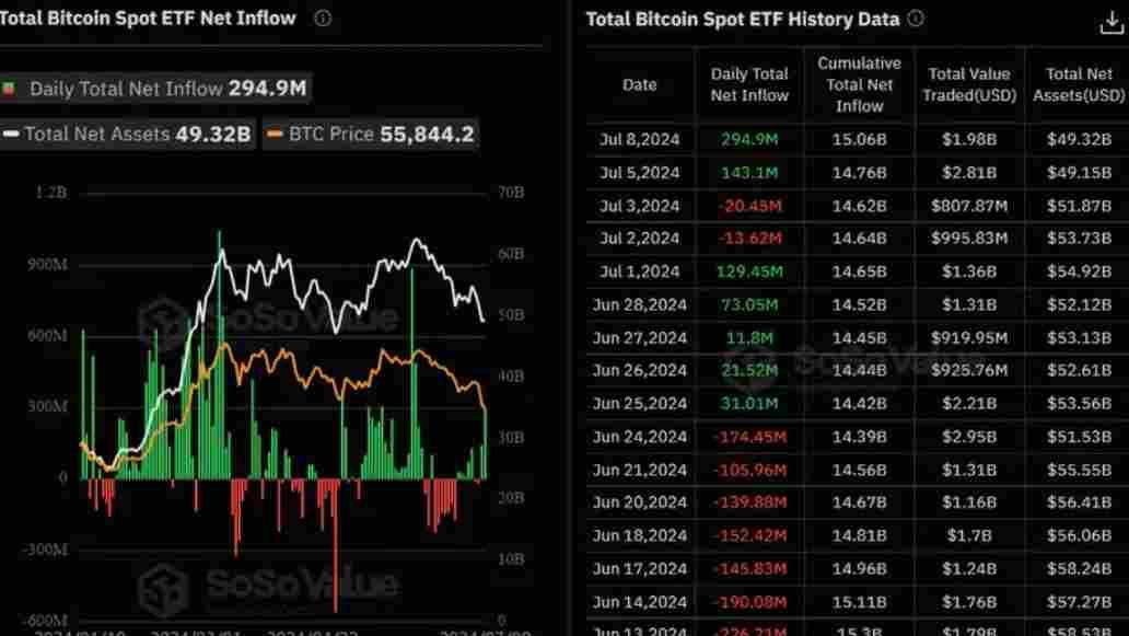 ورود نقدینگی قابل توجه به صندوق های قابل معامله در بورس بیت کوین (ETF) در روز دوشنبه ، ورودی مجموعاً نزدیک به 300 میلیون دلار است. این بالاترین فعالیت خرید برای ETF های بیت کوین از اوایل ماه ژوئن است که قیمت بیت کوین در آن زمان بیش از 70000 دلار بود.