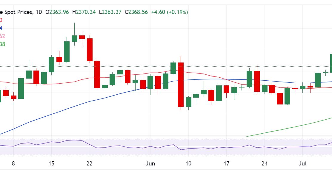 سطح 2,393 دلار به عنوان یک مقاومت کلیدی در نظر گرفته می شود و شکستن از این سطح می تواند نشانه دهنده روند صعودی بیشتر طلا به سمت بالاترین سطح تاریخی در قیمت 2,450 دلار باشد.