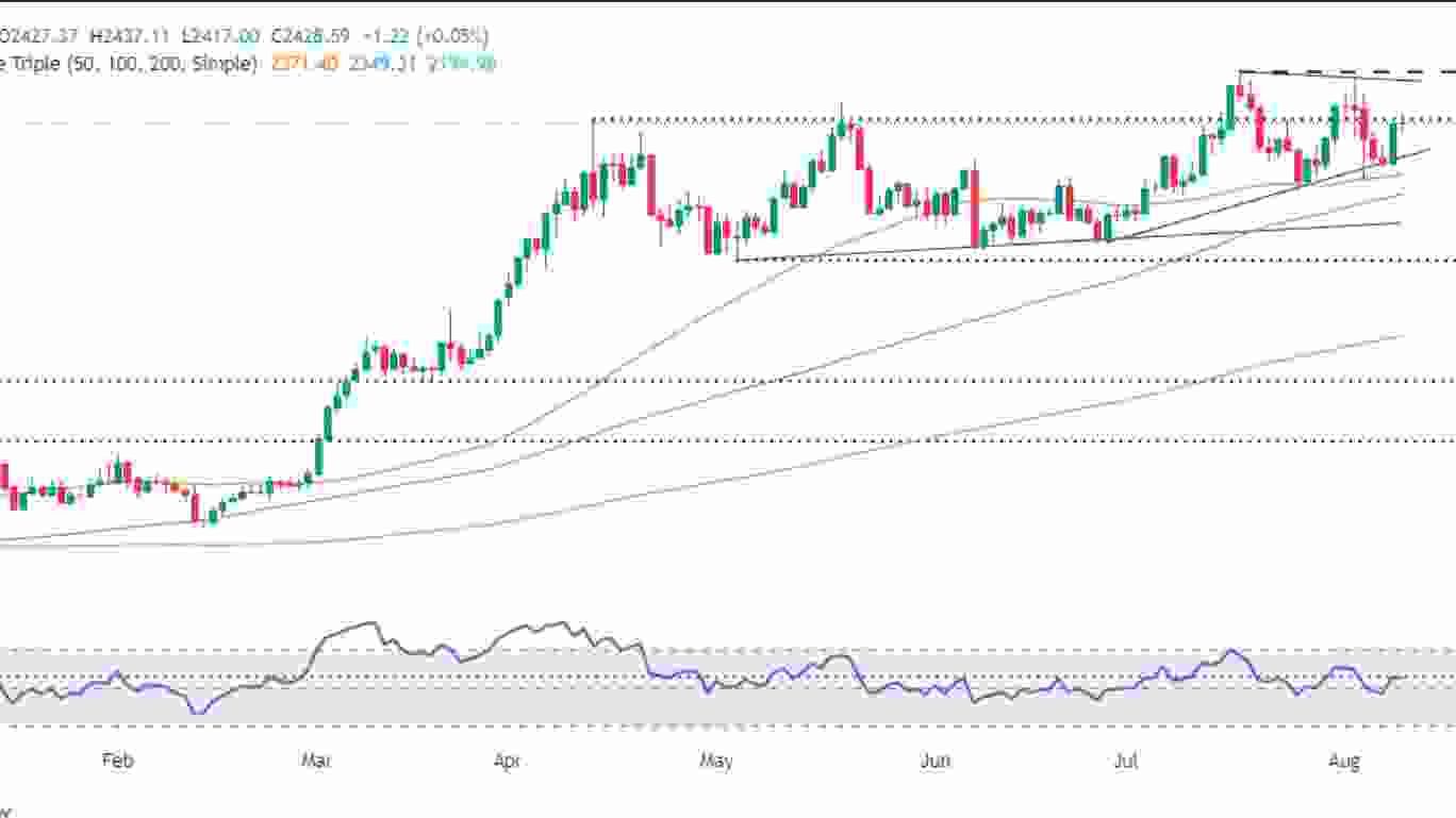 طلا در قیمت انعطاف پذیری نشان داده و برای دومین روز متوالی رشد کرده است، معامله گران پس از انتشار داده های تورمی، انتظار کاهش احتمالی فدرال رزرو در ماه سپتامبر را دارند، طلا در حال حاضر با قیمت 2432 دلار معامله می شود و از چندین عامل کلیدی سود می برد:
